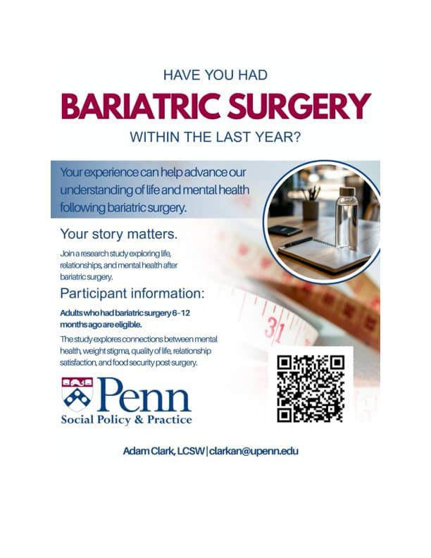 If you've had bariatric surgery or revisional surgery in the last 6-12 months, you could really help make a difference in understanding mental health outcomes after bariatric surgery by taking his survey, which will take about 15-20 minutes to complete.