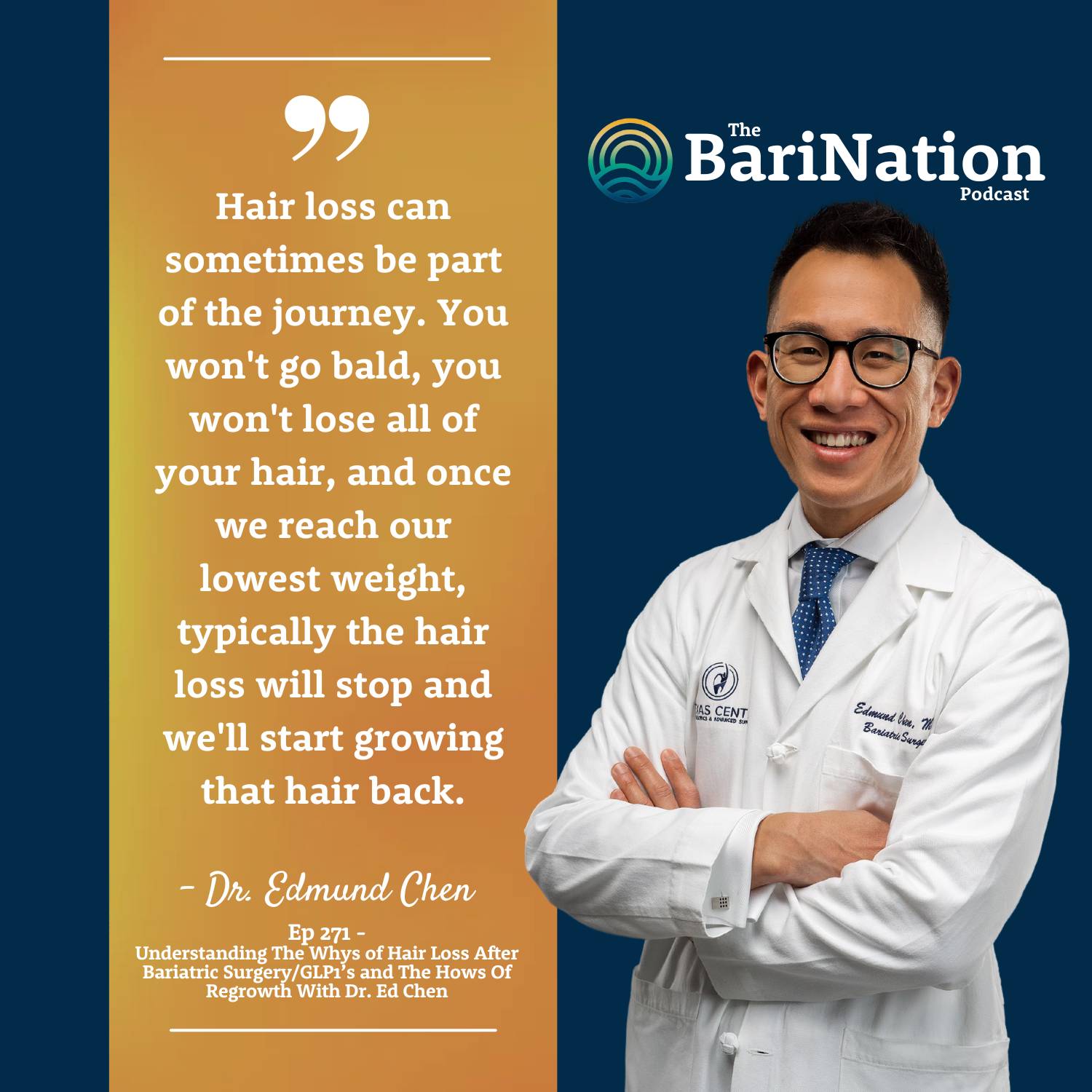 This week on the BariNation Podcast, we sat down with the ever-amazing Dr. Edmund Chen to talk about one of the most common (and most emotional) parts of the bariatric journey: ✨ HAIR LOSS. ✨ Why it happens, what you can do, and how to actually grow it back — for real.